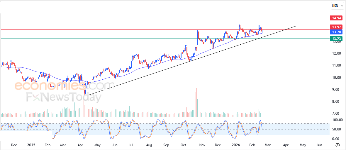 따라서 향후 거래 세션 동안 주가가 상승할 것으로 예상하며, 특히 14달러 저항선을 돌파할 경우 다음 저항선인 15달러까지 상승할 가능성이 높습니다.