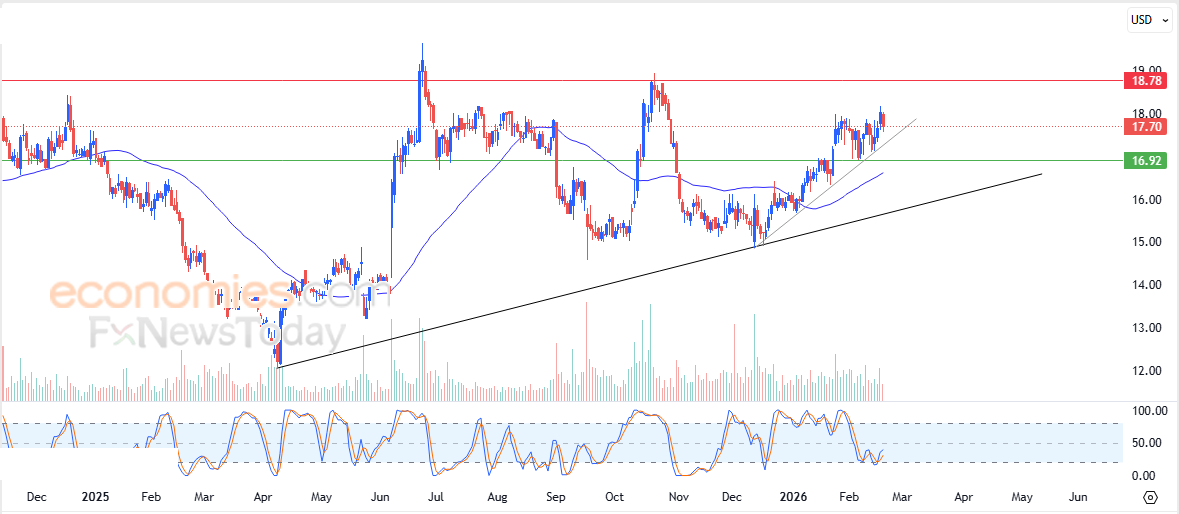 따라서 향후 거래 세션 동안 16.95달러 지지선이 유지되는 한 주가는 상승하여 18.75달러의 주요 저항선을 목표로 할 것으로 예상합니다.
